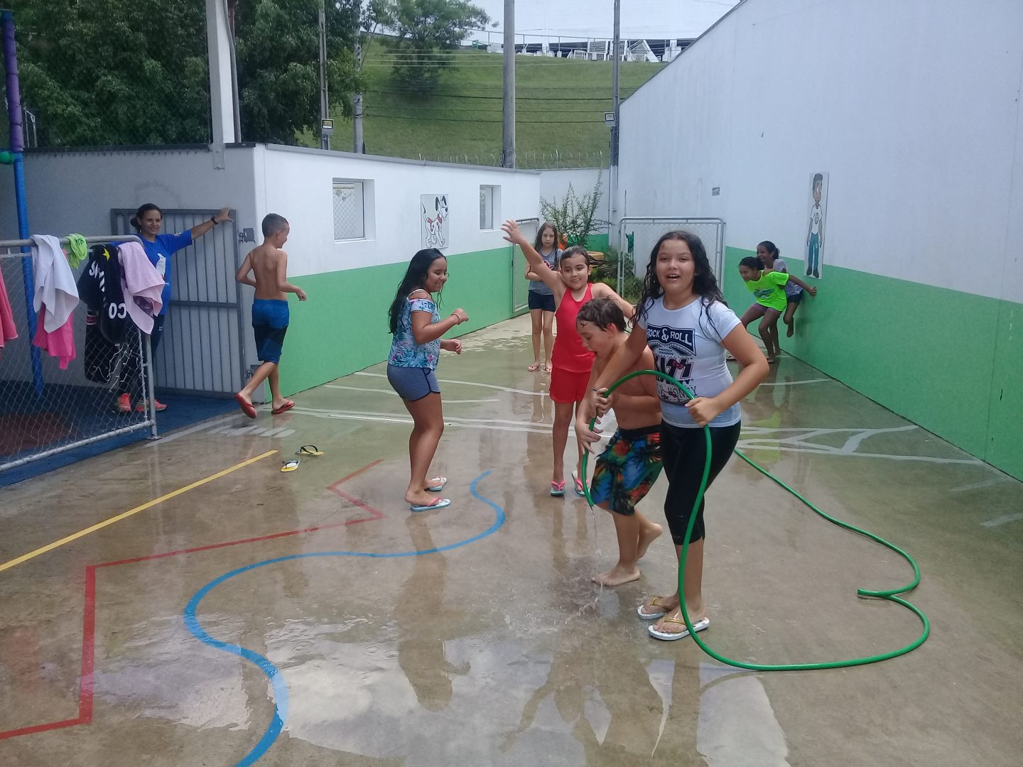 Curso de férias – Banho de mangueira e piscina
